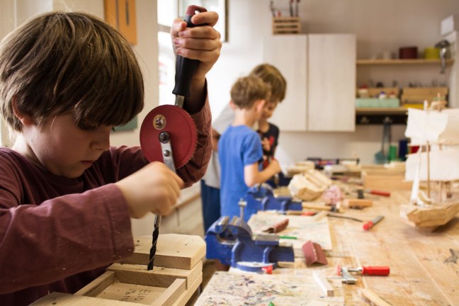 Die Handbohrmaschine oder Tellerbohrer ist ein tolles Werkzeug, um ein Gefühl für das Bohren und vor allem das Material Holz zu bekommen. Anders als beim Akkuschrauber wird mit eigener Kraft gebohrt und der Bohrvorgang kann mittels Kraftdosierung viel besser gesteuert werden. Den meisten Kindern macht das Bohren viel Spaß viele sind fasziniert von dem Werkzeug. … Weiterlesen Bohren mit der Handbohrmaschine